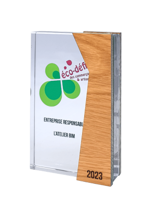 Trophée en Verre avec surépaisseur en Bois Massif de Hêtre Français